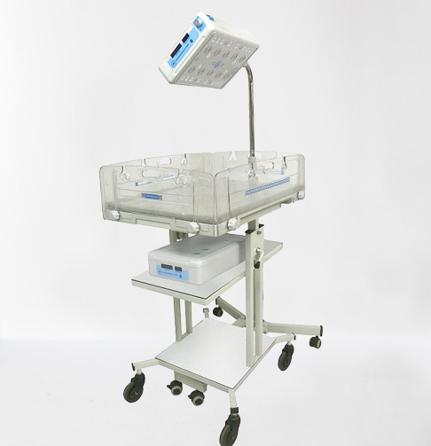 Body Structure Heavy duty mobile stand phototherapy unit mounted on 4 castor wheel (with brakes 2 nos ) along with infant care trolley mounted on 4 castor wheel with brakes 2 nos) and under surface phototherapy unit Light source Therapeutic high wattage blue LEDs, 16 nos for over surface and 8 nos for under surface having wavelength of 455 nm to 465 nm and for observation high wattage white LEDs, 04 nos. LED lamps rated to last up to 50,000 hours at high power .