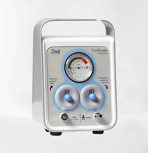 T-Piece Resuscitator is manually operated, gas powered resuscitator designed to provide breaths at a set flow which ensures adequate pressure delivery and oxygenation to the infants. First Breathe® is a T-piece device with controlled PIP, consistent PEEP, thus providing maximum oxygenation to the baby's lungs.